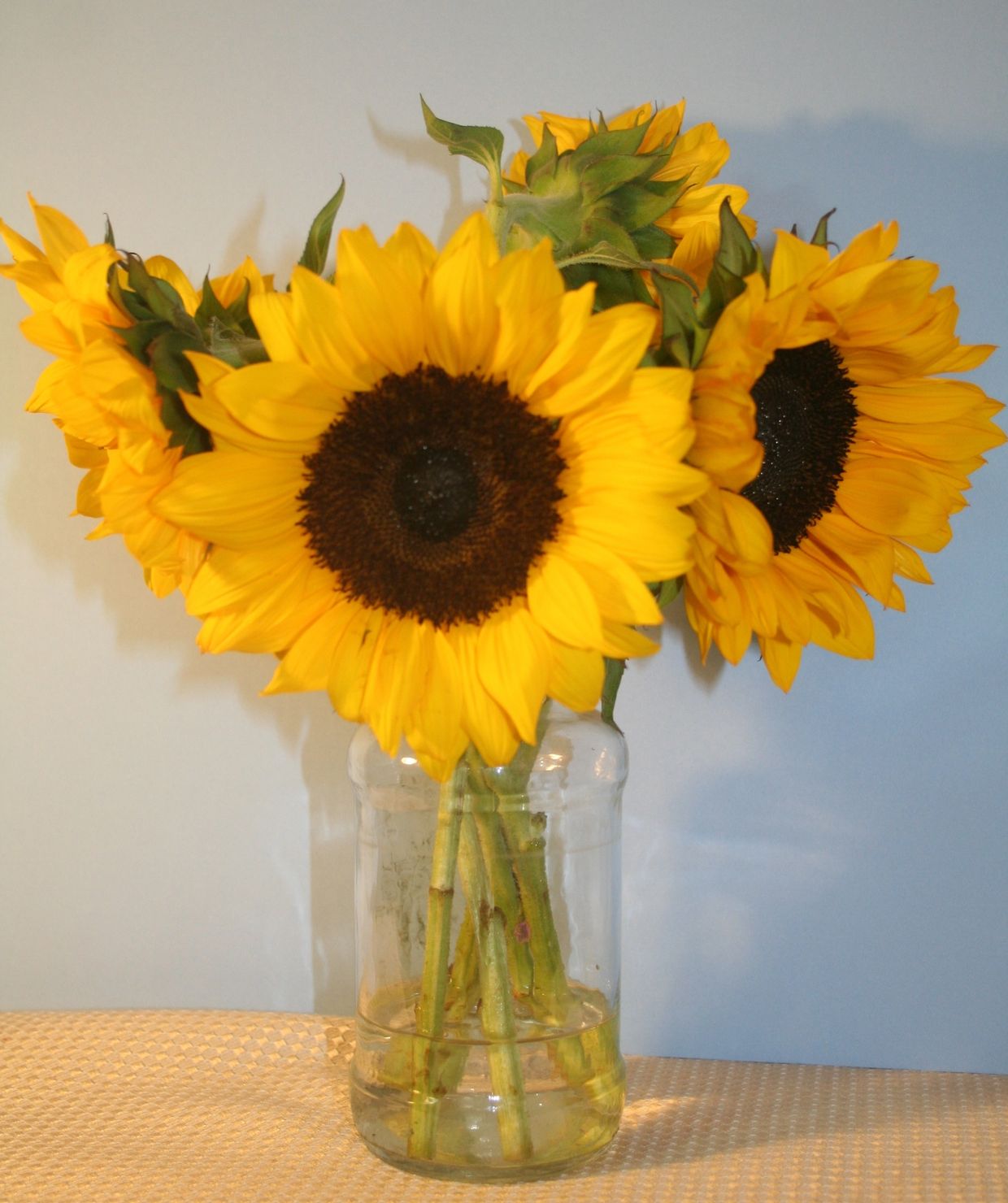 Jar with Water: reflect and refract colors you used in background and sunflowers such as blue, brown, yellow, and green.